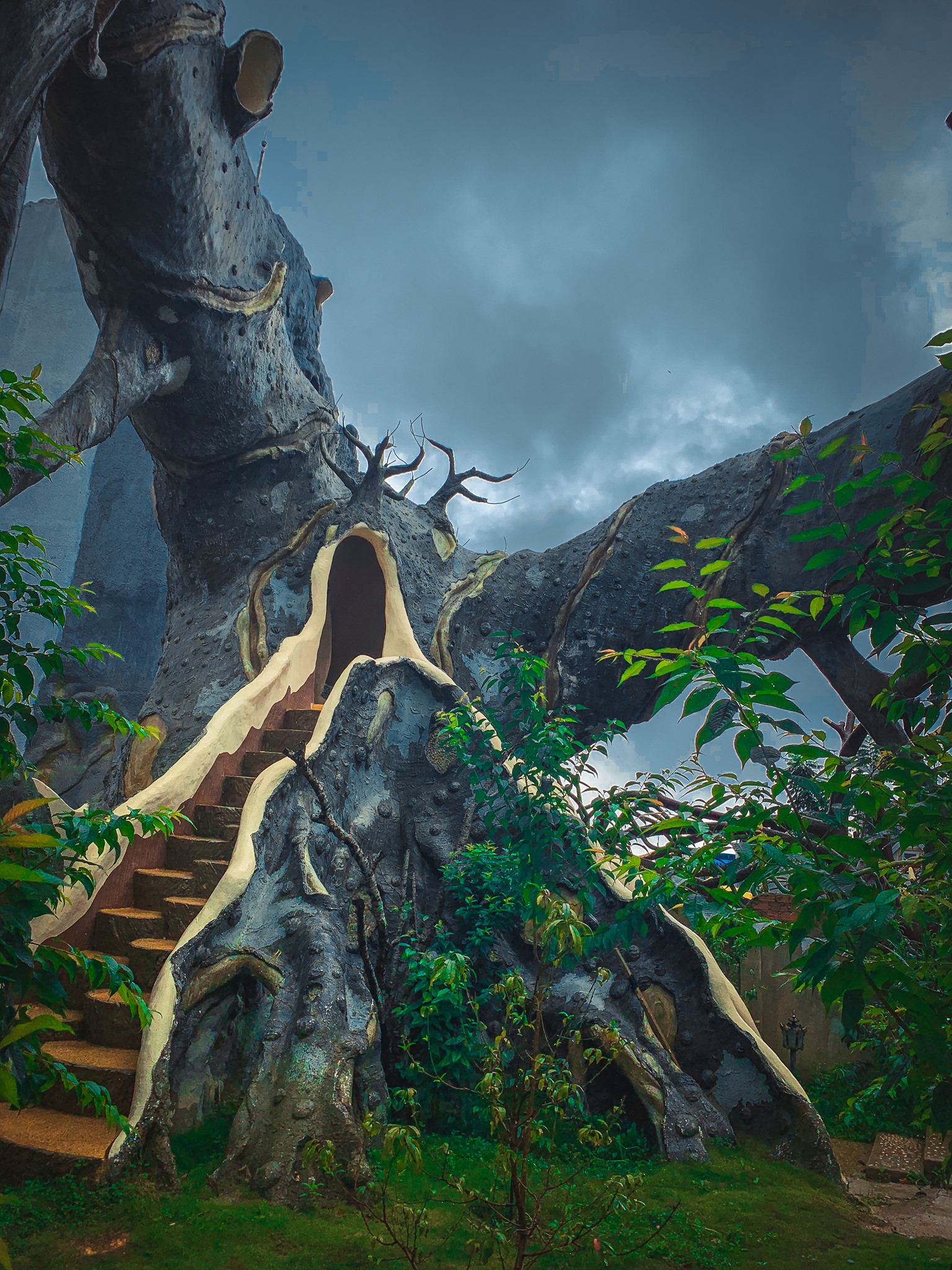 Đến với Crazy House Quý khách sẽ có được những trải nghiệm thú vị về kiến trúc của vườn Thiên Đàng, nơi có những cô tiên đang ca hát nhảy múa dưới gốc cây anh đào, những nhân vật chỉ có trong thần thoại và trí tưởng tượng như ngựa bay, thần tình yêu Cupid, rồng bay.... Bên cạnh đó Quý khách cũng có thể tận hưởng tách cà phê thơm lừng cùng khí trời se lạnh của Đà Lạt khi ngồi bên trong những trái đào tiên to lớn, được dẫn lối bởi những thân cây ngoằn nghèo.